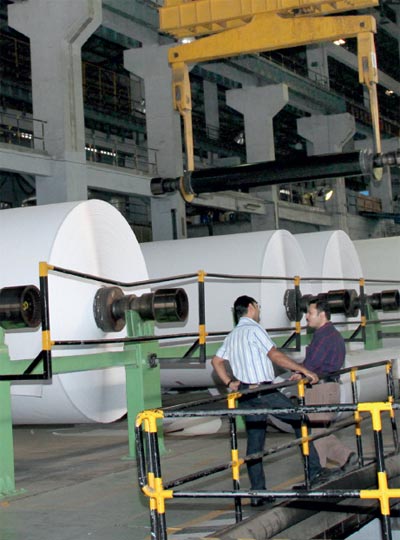 Produzione di carte speciali e cartoni presso l’impianto ITC di Sarapaka, Andhra Pradesh.